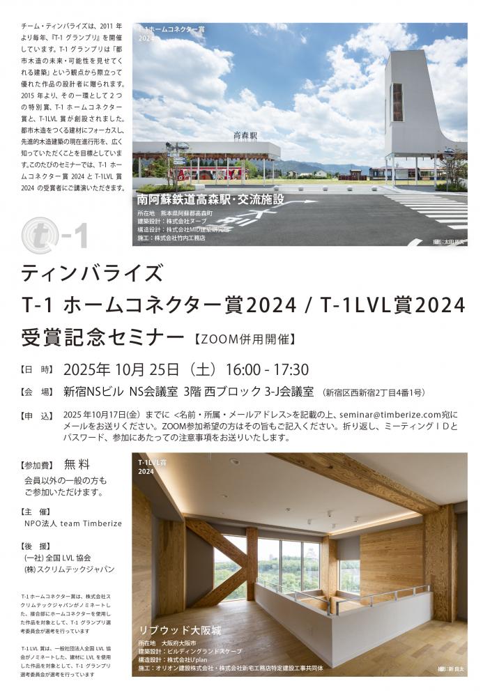 『T-1 ホームコネクター賞2024/T-1 LVL賞2024 受賞記念セミナー』参加者募集中!